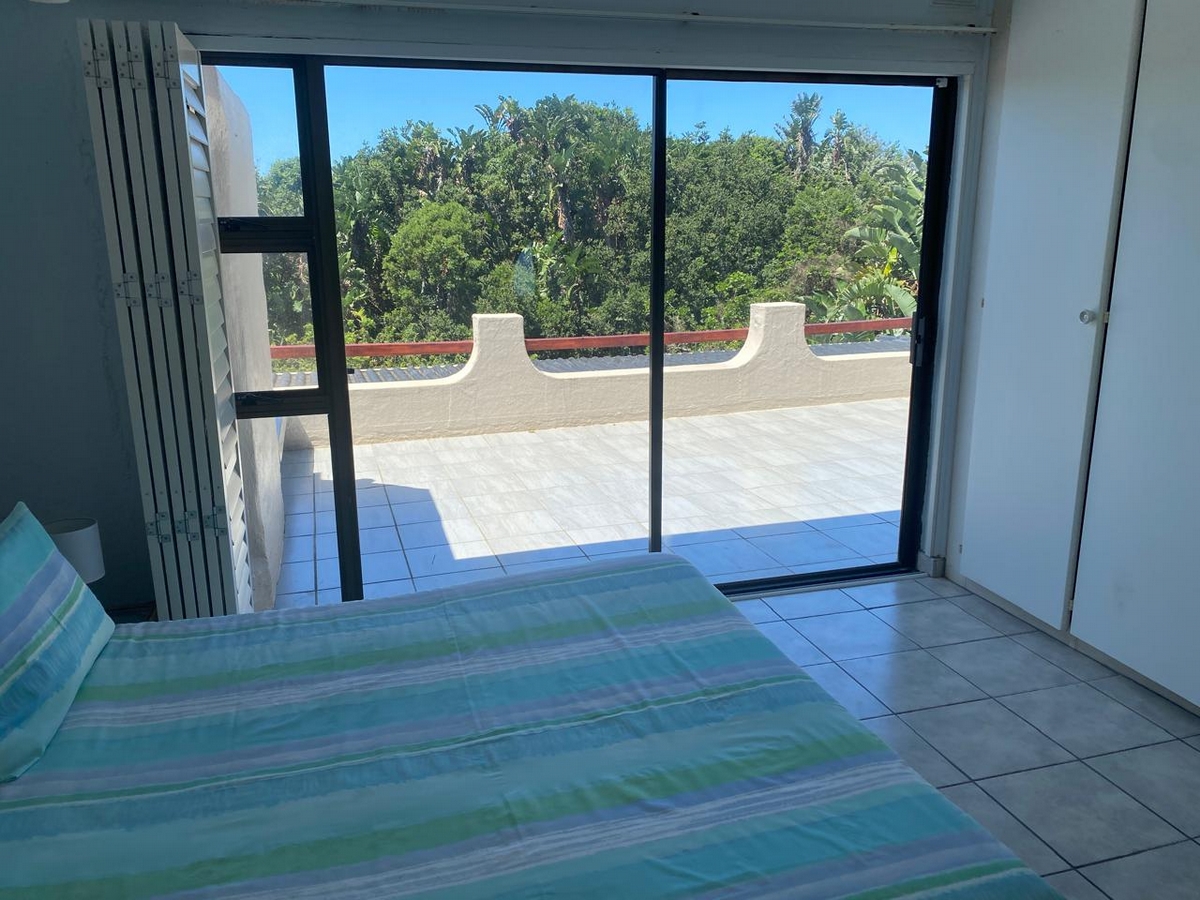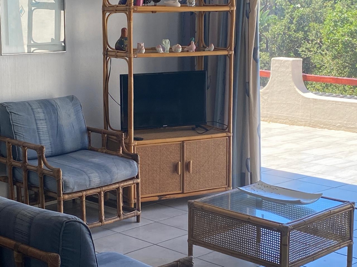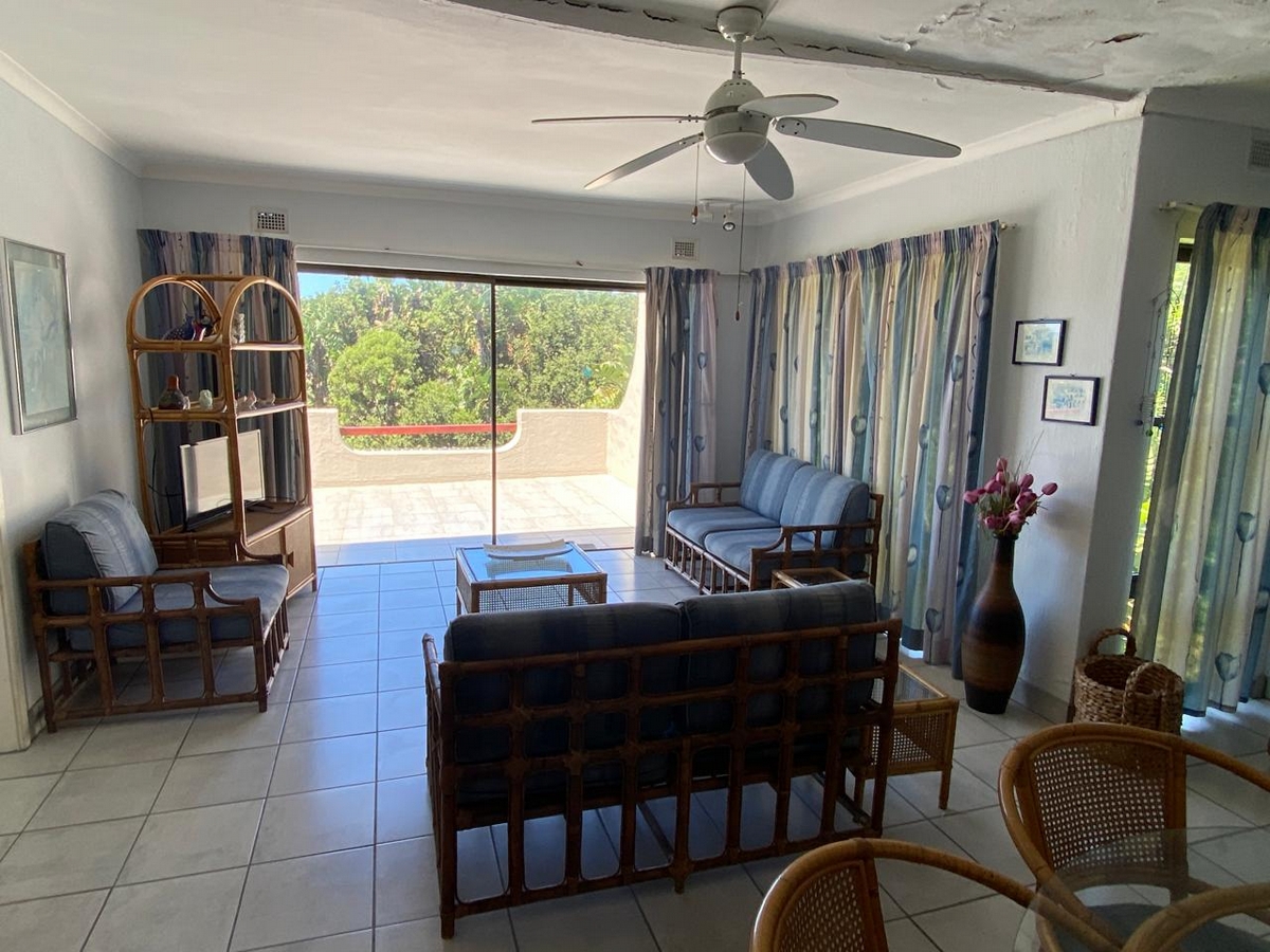 Spacious beachfront unit with sea views in Leisure Bay. Features 3 bedrooms, 2 bathrooms, ceiling fans, Weber braai, and well-equipped kitchen. Complex includes a pool, coin laundry, and secure parking.