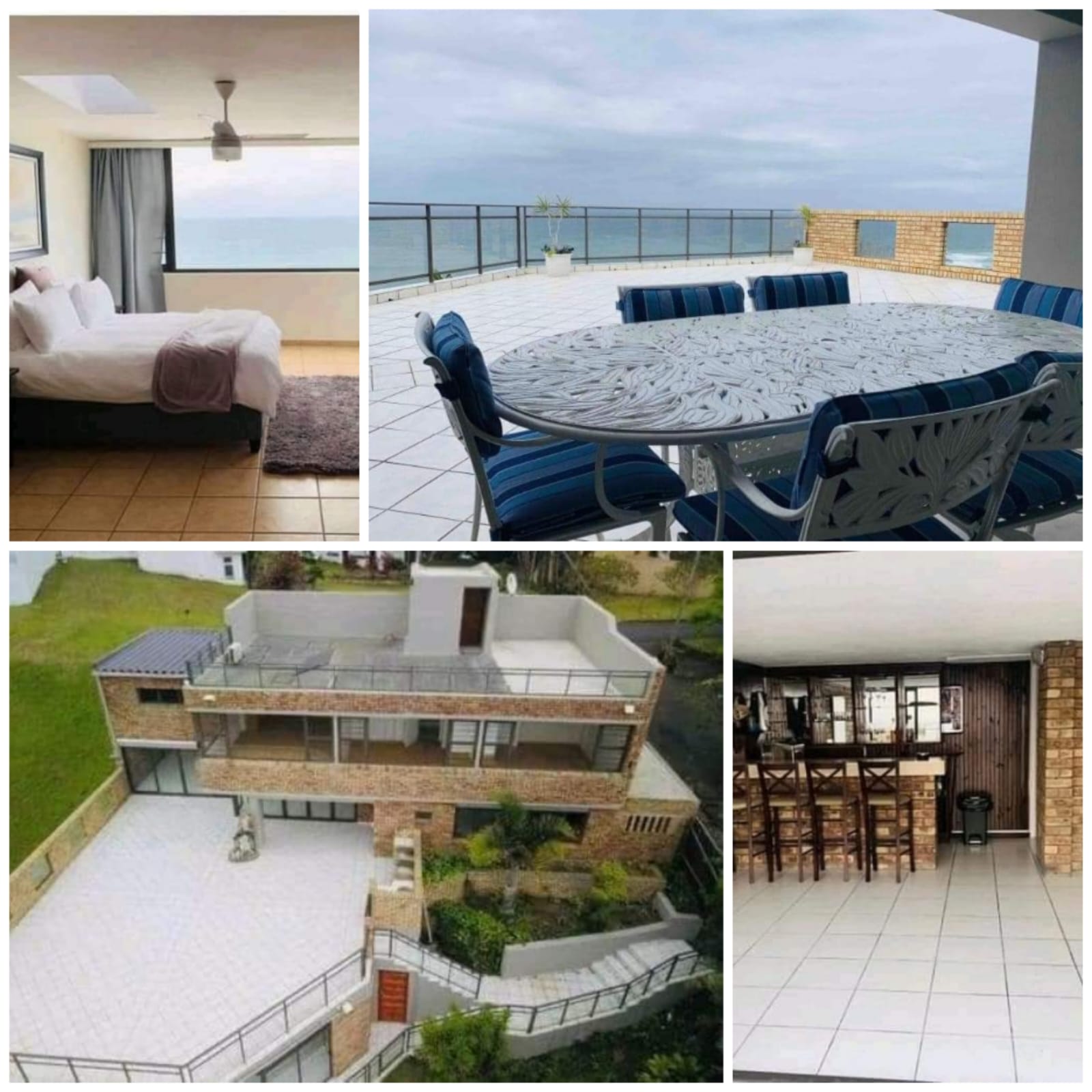 Spacious beachfront house with 5 bedrooms, full DStv, Wi-Fi, aircon, garden, bar, and daily cleaning. Perfect group getaway!