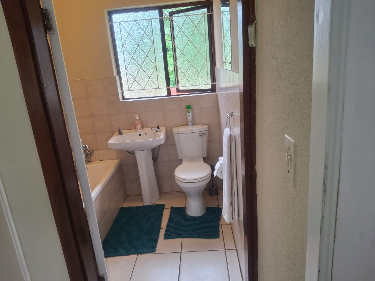 3 bedrooms with 2 bathrooms town house in complex, 3 beds, 2 beds are queen bed size and 1 us double bed size. We offer fans, Dstv, uncapped wifi. No swimming pool, but it’s 3 minutes drive to the beach, it’s near by Malls and hospitals and pharmacies. Safe area and also alarm system.